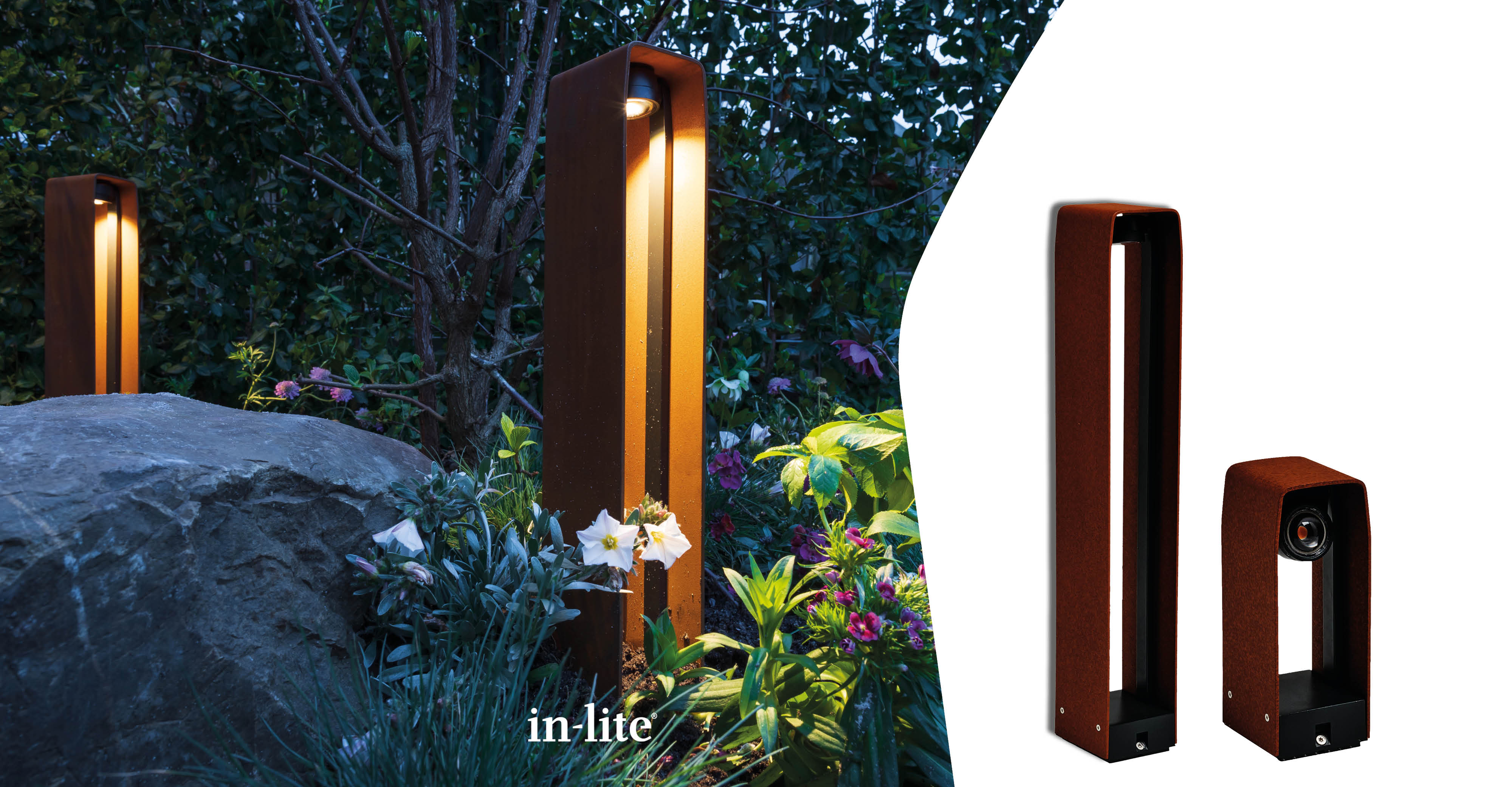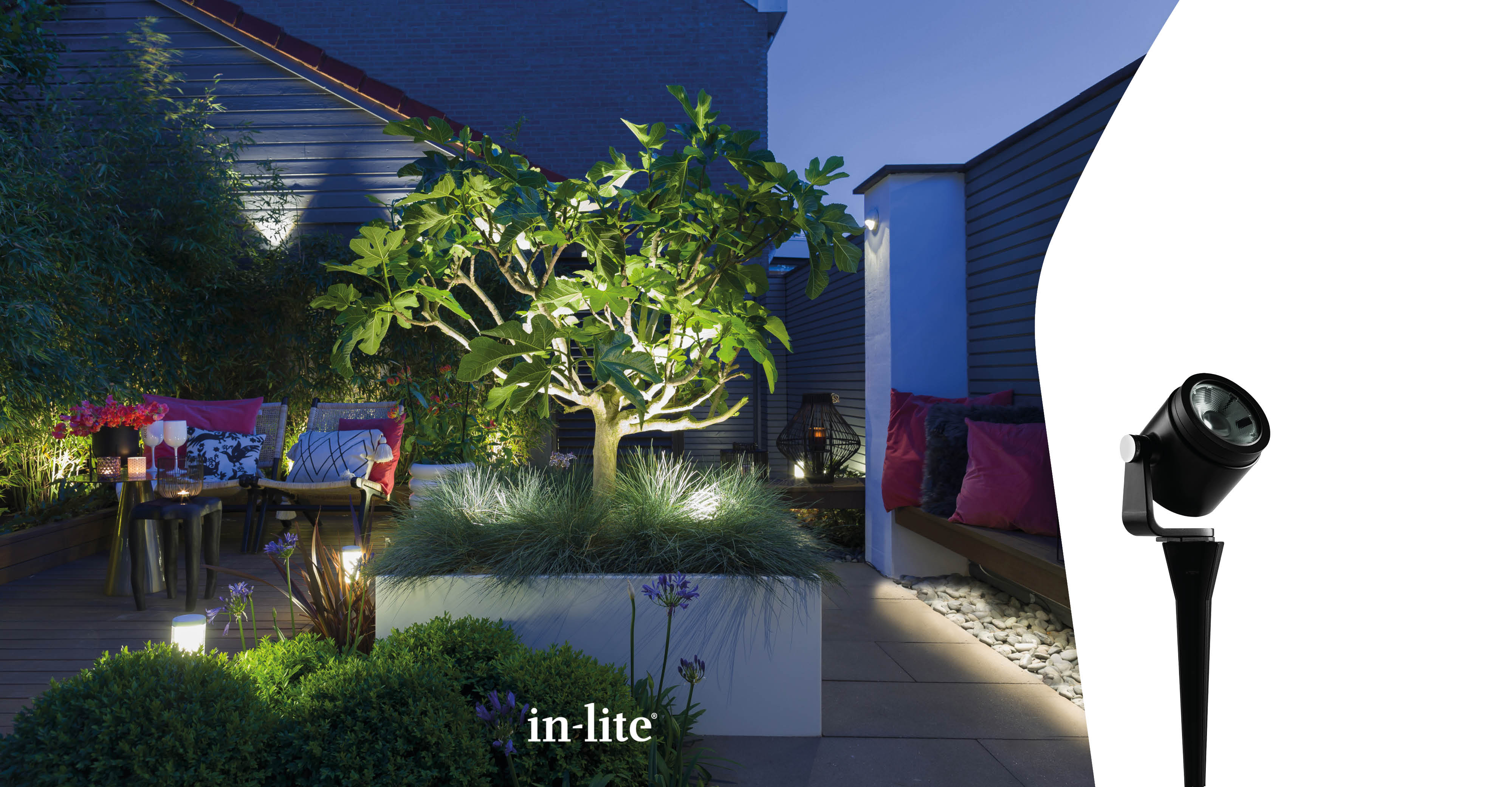 Met de buitenspots van in-lite maak je van een kleine struik tot een flinke boom een echte blikvanger! Er zijn tuinspots voor het verlichten van hoge bomen met een smalle kruin, armaturen met een dubbele spot die volledig draaibaar en kantelbaar zijn – perfect voor tussen hogere siergrassen en struiken. Daarnaast zijn er spots voor bomen tot wel zes meter hoog met een brede kruin en spots met een groot lichtbereik tot veertien meter hoog. Voor vijvers heeft in-lite ook een speciale onderwaterspot. Deze is volledig waterdicht en blijft stevig op de bodem staan. Dankzij de duurzame behuizing en hoogwaardige coating zijn de armaturen bestand tegen de meest extreme weersomstandigheden.