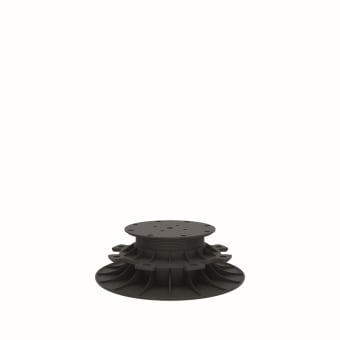 Verstelbare vloerdrager voor het eenvoudig en nauwkeurig plaatsen van verhoogde terrasvloeren.