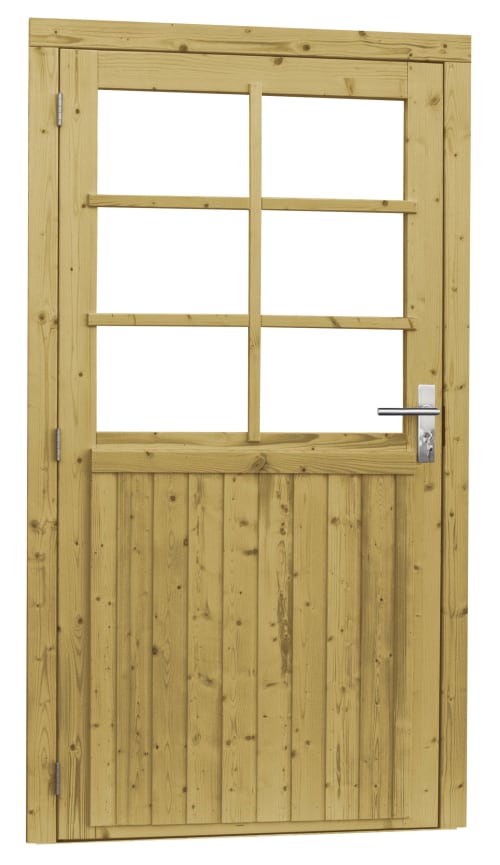 Vuren enkele 6-ruits deur links incl. kozijn 90x201 cm groen